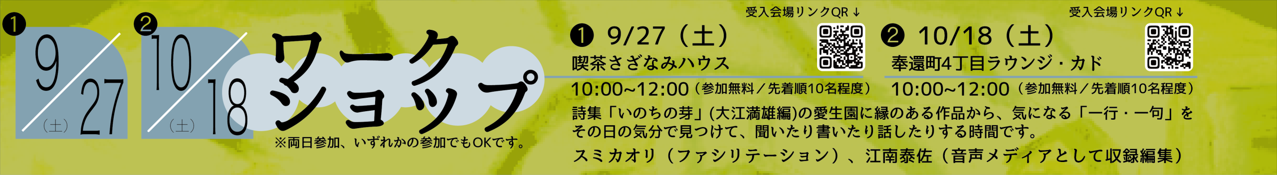 ↑ワークショップ・講演会お申し込みは、↑QRコードを読み取るか、クリックしてください。↑