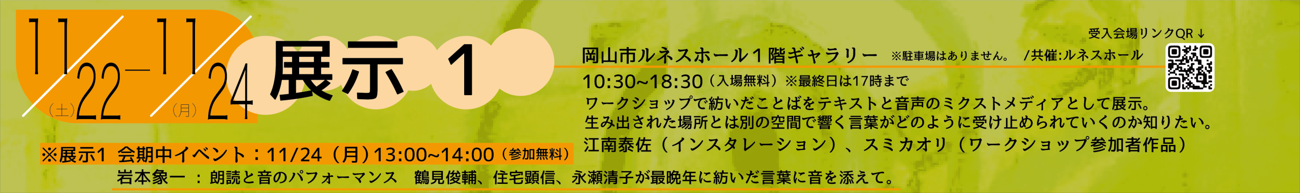 24日には、岩本象一の詩と音のライブ、ギャラリートークを開催。