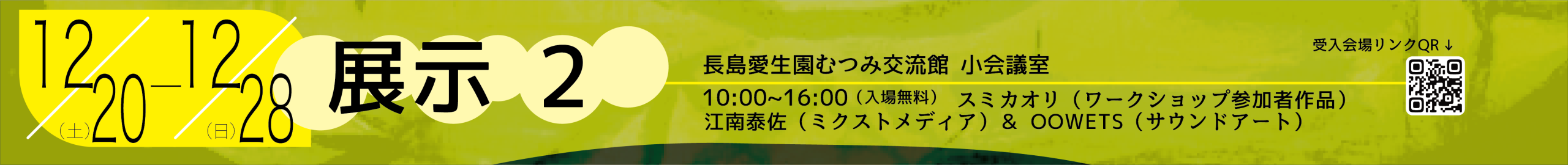 長島愛生園睦交流館 小会議室 12/20-12/28(変更)→12/20-12/26(金)まで 10:00~16:00 とな
