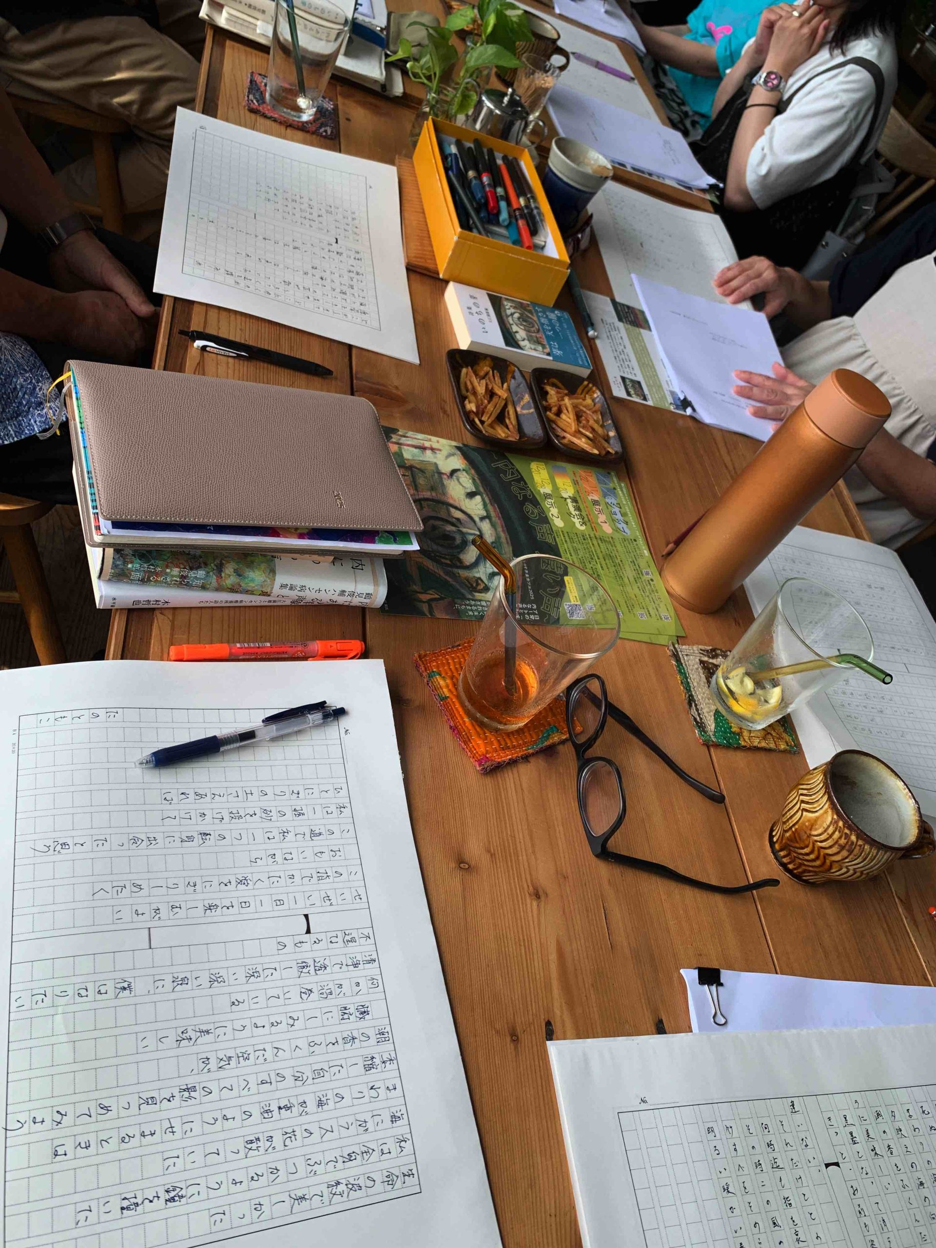 それぞれ10人程度の参加者とともに、詩のワークショップを実施。詩集「いのちの芽」(大江満雄編)に掲載の詩から、気になる言葉を組み合わせ、新たな「詩のようなもの」を作りそれぞれが朗読し録音しました。